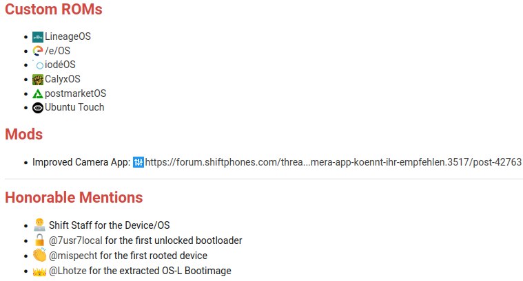https://forum.shiftphones.com/threads/bootloader-unlock-root-custom-recoveries-gsi-roms-mods.3207/